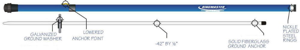 Banner Stakes: Many people use rebar to anchor their banners. And that's why their poles break. The metal edges rubs the inside of the pole and weakens it. And the metal doesn't flex in the wind. The preferred way to anchor your poles is with lighter weight, flexible and clean fiberglass stakes. The Get In the Wind stake is a 42 inch solid 1/2 inch diameter fiberglass pole. Buy them in a set with your Ringmaster� or buy them separately. |