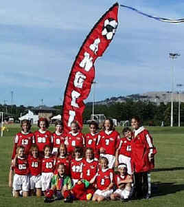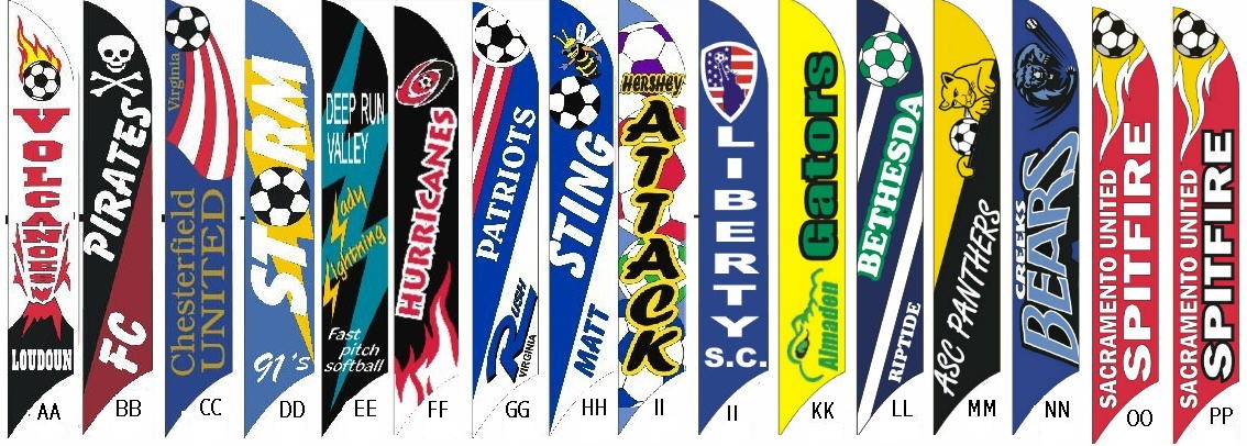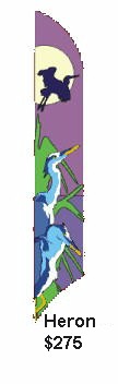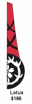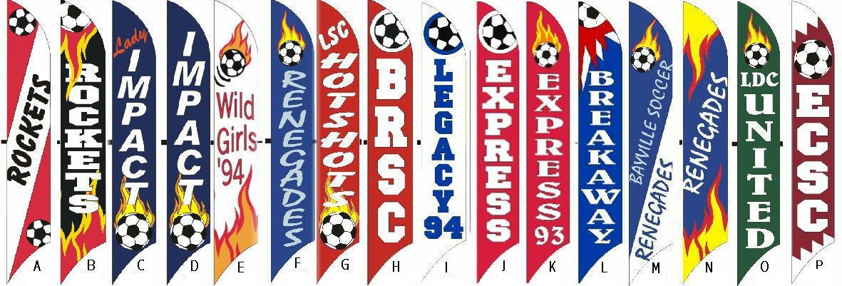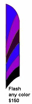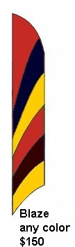 Custom Banners: Windfeather banners are perfect for establishing your presence whether at home, at work, or on the road. We specialize in banners for soccer and softball teams, community festivals, retail promotions and tailgate parties. We can produce custom appliqu� sewn designs or digitally printed images. Let the artists at Get In the Wind transform your logo into a great promotional tool. Email us your ideas and we'll be happy to prepare a free proof and price quote. We have more information on custom designs below. |