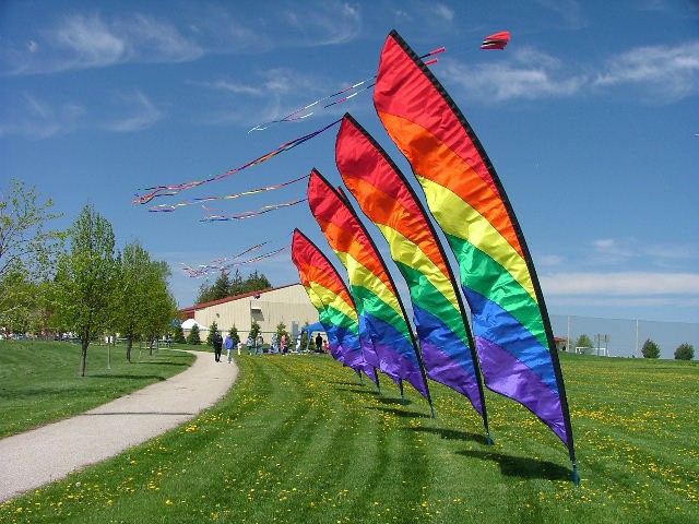 Our big 16 foot tall flags are a complete display system that decorate your business, home, family picnic or kite field in a bright colorful way.