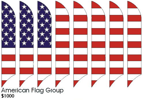 Our spectacular American Flag Group is a great way to wave the flag. You get eight banners for $1280 -- an average of only $160 each. Click here for a short video of how they would look on your field.. |