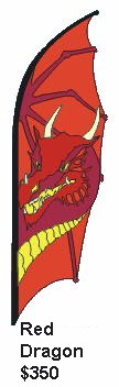 We now have more than thirty different banner designs available. Each banner system includes a SolarMax fabric banner sail (sewn in the USA), 16.5 foot heavy-duty fiberglass pole, 12 foot streamers, ground stake, and storage bag. To download a printable PDF copy of our Banner Catalog, click here. (546 KM Acrobat file) |
