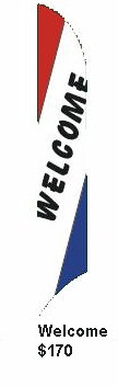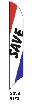Text Banners -- $205 Each! Send a bold message at a reasonable price. "Stock" designs are just $205, and if you have something else in mind, ask for a quote on a custom Text Windfeather.
