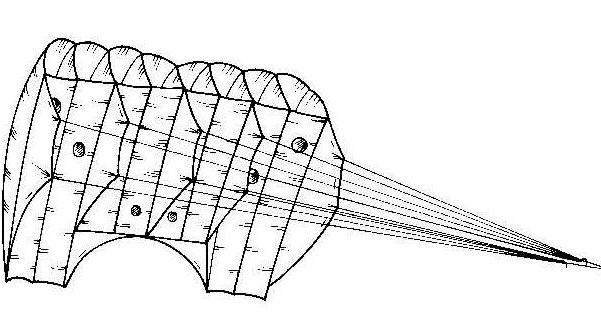The "Wedge" SkyFoil inserts a large triangle at the top of the sail and uses each of the eight cells as a design option. We can decorate the wedge with a rainbow pattern or any other variations. The cost is $390 for the Lifter and $120 for the Mini. |