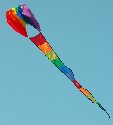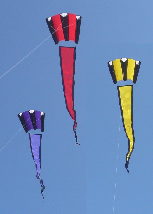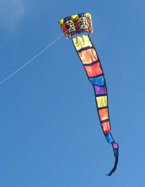 Neon Ribbon Tails: Brighten up your kiting adventure with a spash of color! The 'neon' package includes five hemmed pieces - each 7.5 feet long. You get purple, pink, aqua, orange, and yellow. Connect the set to your kite or line with the enclosed snap or separate the set and spread several individual streamers along your line. You pay $14 for the entire set. |