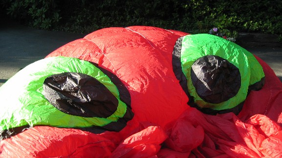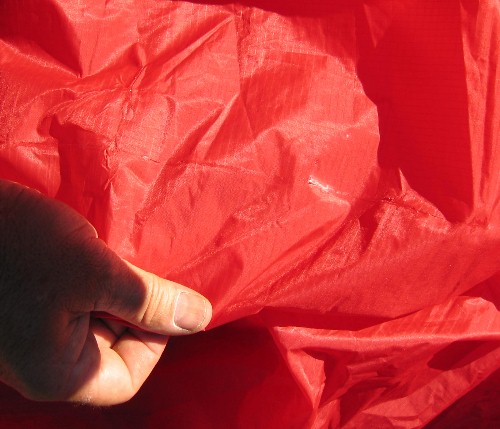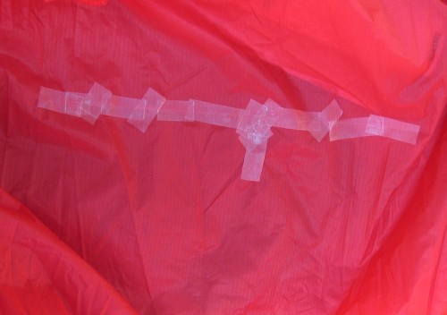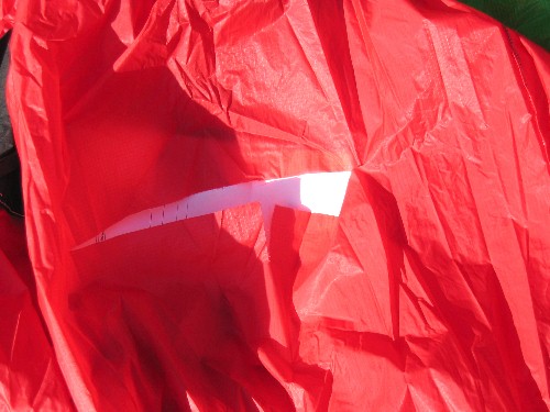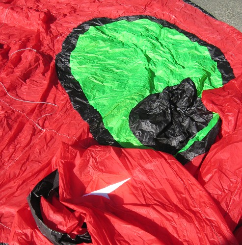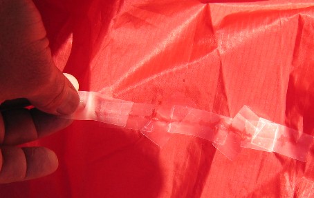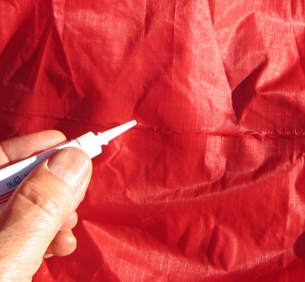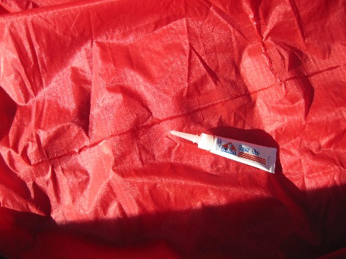 When you are done, let the glue dry completely. Take care to not let the fabric shift or blow around so the glue makes contact with anthying else - especially other parts of the kite - while drying. |
