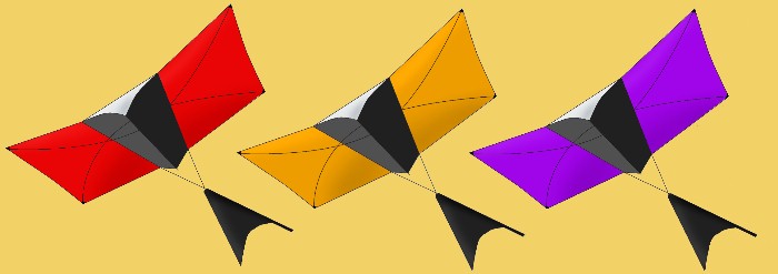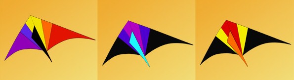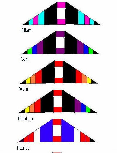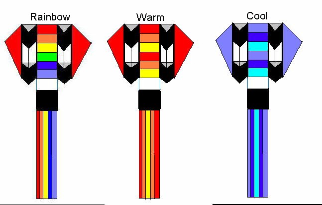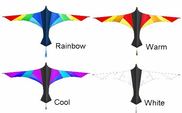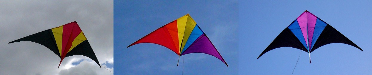 Like all of our deltas, the leading edge spars are sewn in place so they won�t creep up to the nose. Click here to see colors. Available in rainbow, warm or cool colors for $130. Click here to see a photo of all three kites.