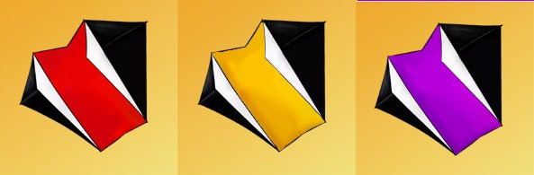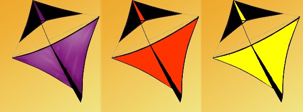 Our kite measures 5.5 feet tall and 4.5 feet wide. Click here for a photo. It is constructed of durable ripstop with a fiberglass frame and comes complete with our exclusive Tuning and Fighting Guide.. We use the four-bridle-point configuration for ease of tuning. Choose red, orange, yellow, green, blue, or purple. "Roks" fly well in all winds and are excellent for intermediate or advanced fliers. They will also hold tube tails or line art. Use 100-200 pound flying line. Just $68 each.