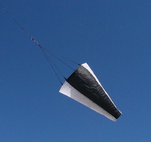 The Double Delta Conyne is a proven performer for a variety of winds and flying conditions. Our DDC is 10 feet wide and 3.5 feet tall. It is made from tough nylon sail cloth and fiberglass framing.