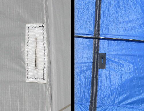 To assemble, connect the wing rods into the plastic fitting on the center spine. Then insert the small stand-offs at the wing-tips. At the base of the kite, slip the flexible spreader between the spine and the fabric. Insert one end into a fabric pocket. Then carefully bend the spar and insert the other end into the pocket on the opposite side.