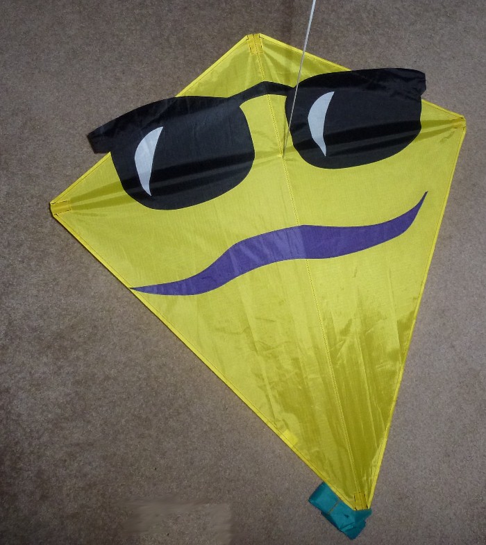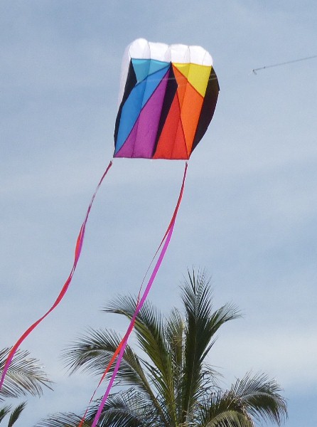 Our G-Kite Diamond is a big five feet tall and four feet wide. And it only costs $30. Line, handles and tails are all included. Click here for a photo. |