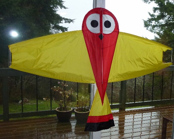 Each bird kite is based on a flying creature well known in North America. Designed by kite artist Robert Brasington, they each hold the promise of short-term fun and long-term performance. To assemble, just pop the extended end of each wing rod into the white pocket on the opposite side of the kite. Attach your flying line to the bridle loop and send it soaring. In flight, the wings will flex back. For changing winds, you can slide the bridle loop higher or lower for improved performance.