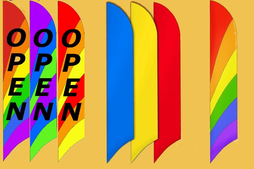 Choose the colorful Rainbow for $40. Economical Basic banners are one solid color for just $30. They come in red, orange, yellow, green, blue, or purple. Or advertise your store, garage sale, or event with our Open banners which come in rainbow, warm, or cool for $40. Feathers are designed for use with our Ultra 10 banner pole. Alternatively, they work well with inexpensive PVC pipe for a pole and rebar stakes for an anchor. (Purchase separately.) Click here for assembly instructions. |