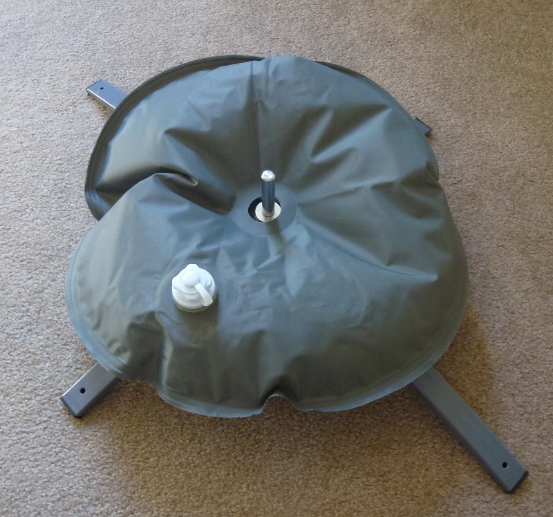 Display Stand: Display a banner or pole indoors with this simple floor base. The 24" sections screw together into a cross stand and are desiged to hold either the Ultra 10 or 16. A ball-bearing connector allows banners to turn easily. $25 each. Water Pillow: For extra stability, add some weight on top of the Display Stand. We supply a tough water pillow designed to slide over the banner anchor rod. For storage, it empties fast and folds down small and light. $25 each. |