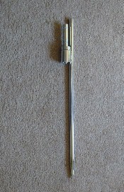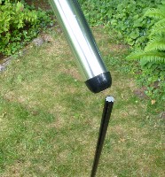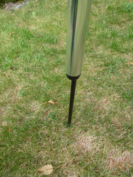 Anchor Spike: An alternative to the fiberglass Anchor Stake is the metal Anchor Spike. This is an attractive and well-engineered device that holds the Ultra 10 or 16. Notice that the top of the spike stands above the pole anchor. That's the piece you hit with a hammer! The pole connection point stays safe and undamaged. A ball-bearing base allows banners to turn easily. $25 each. |