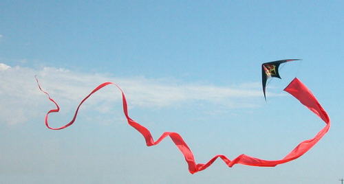 Single Streamer Flag: It is one long shimmering piece of fabric. Streamers are usually used on single-line kites but they work great with Sport kityes too!