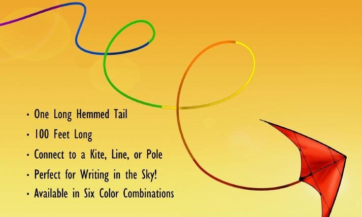 100 Foot "Skywriter" Ribbon: Leave a trail in the sky! Our 100 foot ribbons are made from tough nylon sailcloth and will add excitement to any kite. Use them to accent a traditional kite or for "skywriting" with maneuverable kites. Available in six color combinations