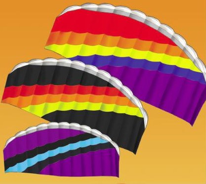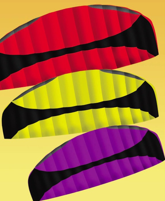 | Christoph Fokken of Germany was enlisted to develop two exclusive soft stunters for GKPI. They are fast, powerful, and extreme flying fun! At the end of the day, you just stuff them in the bag. No parts to lose or break! Soft sunters are also great for kiteboard and traction training. |