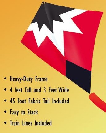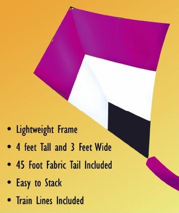 Chevron Stunt Kite: The Chevron is the second stunter in our series of maneuverable kites. You pilot it through the air with two flying lines. We've made it tough, forgiving, and easy to handle. Each Chevron is 4 feet tall and 3 feet wide. A matching 45 foot tail is included.