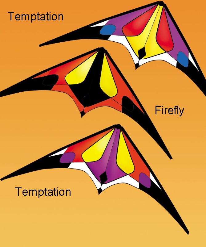 Temptation and Firefly were designed to do all the latest tricks, but in an easy manner that gives beginners, intermediate and skilled fliers a great flying experience. Click here to see the kite being flown.
