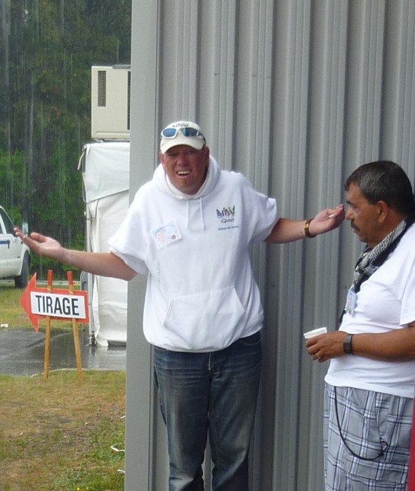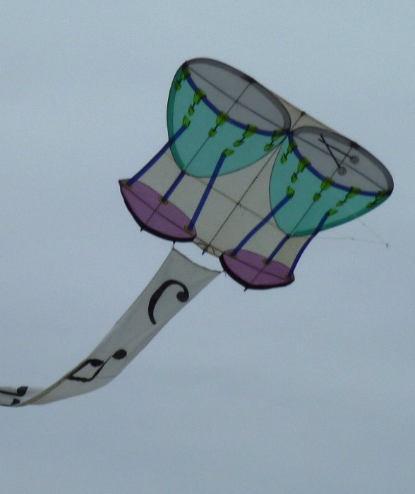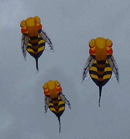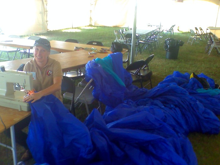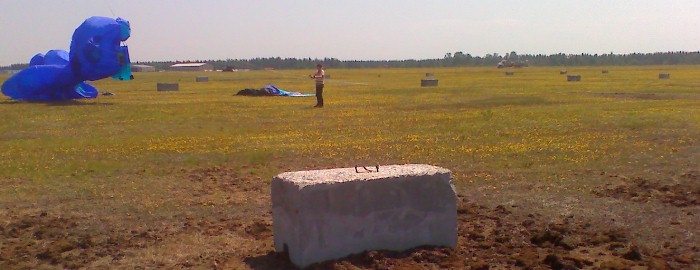 Italian Team Vulandra came the day before but their bags did not. They stand around dejectedly. So we pull out a blue Bear and try to put something in the sky. And as expected, it goes up-and -down... The flying is hard but we have the only show on the single-line field.
